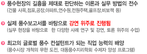 ³Î¸® Ȱ¿ëÇØ ÃÖ°íÀÇ ±Û·Î¹ú dz¼ö ÄÁ¼³ÅÏÆ®°¡ µÇ´Â dz¼ö ½Ç¹«¸¦ ¹è¿ì°í ¶Ç ¸öÀ¸·Î ÀÍÈ÷´Â Á÷¾÷ ´É·Â ¹è¾ç °úÁ¤À» °³¼³ÇÏ¿´´Ù.