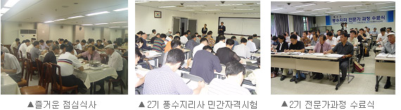 2003³â 5¿ùºÎÅÍ 2003³â 10¿ù±îÁö 60¿©¸íÀÇ Ç³¼öÁö¸®»ç¸¦ ¹èÃâÇÑ °ÁÂÀÔ´Ï´Ù. 1±â dz¼öÁö¸® °úÁ¤ º¸´Ù ´õ¿í ±³À°ÀÌ Ã¼°èÈ µÇ¾ú½À´Ï´Ù. ¾Æ¿ï·¯ ´ëµ¿Ç³¼öÁö¸®ÇÐȸ dz¼öÁö¸® °ÁÂÀÇ ÀüÅëÀ» ¸¸µé¾î°£ °ÁÂÀÔ´Ï´Ù.(µ¿±âȸ Á¶Á÷ ¹× ȸ¿ø¼öøÁ¦ÀÛ, ¼ö·á½Ä µî)